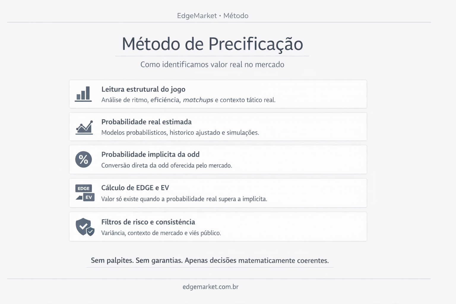 O EdgeMarket é um projeto independente focado na análise do mercado esportivo, com ênfase em precificação de odds, estimativa de probabilidade real e identificação de valor esperado (EV).